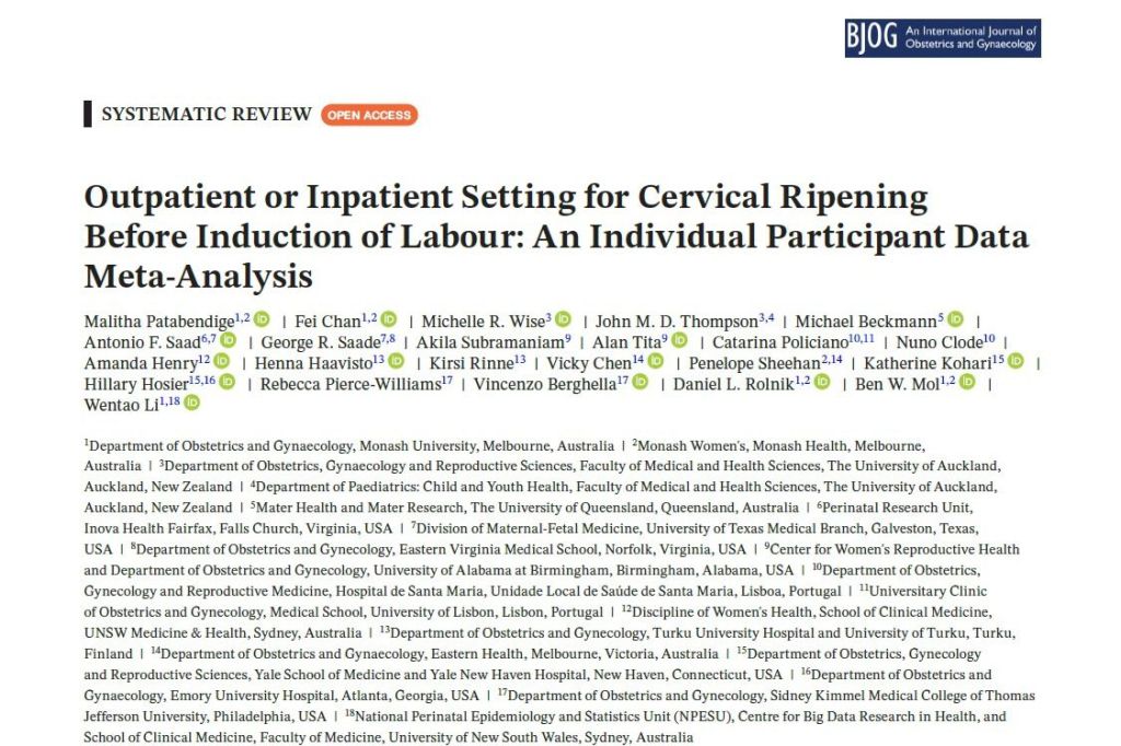 Patabendige, M et al. “Outpatient or Inpatient Setting for Cervical Ripening Before Induction of Labour: An Individual Participant Data Meta-Analysis.” BJOG (2025),